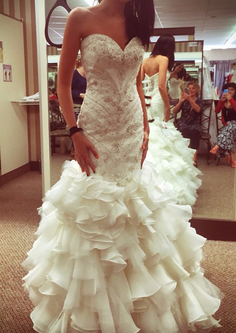 Voyage By Mori Lee 6837 Strapless Satin Mermaid With Ruffle Skirt Mermaid Ruffle Wedding Dress