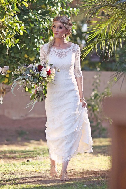 Alanre Sheer Lace Satin Bride Gown Long Sleeves Mermaid Wedding Mermaid Sleeve Satin Wedding Dresses