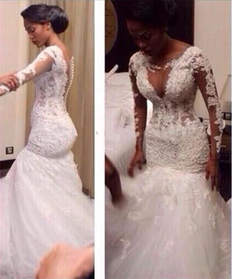 2017 Vintage Full Lace Long Sleeves Mermaid Wedding Dresses Mermaid Style Wedding Dress With Sleeves