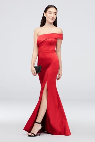 Asymmetrical One Shoulder Satin Mermaid Gown David S Bridal Mermaid Sweetheart Neckline Mermaid Red Wedding Dresses