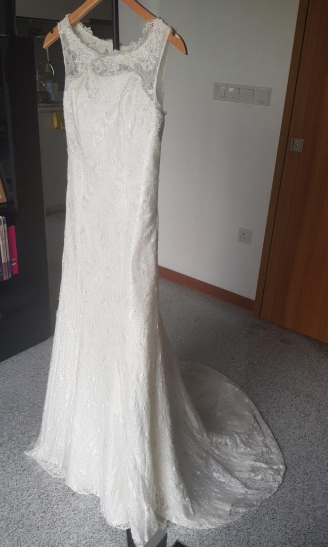 Top Rank Zipper Wrap Embroidery Head Veil Lace Tulle Chapel Train Mermaid Trumpet Lace Wedding Dress