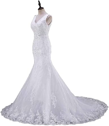Gfdress Women Mermaid Lace Wedding Dress Lace Mermaid V Neck Mermaid V Neck Lace Wedding Dress