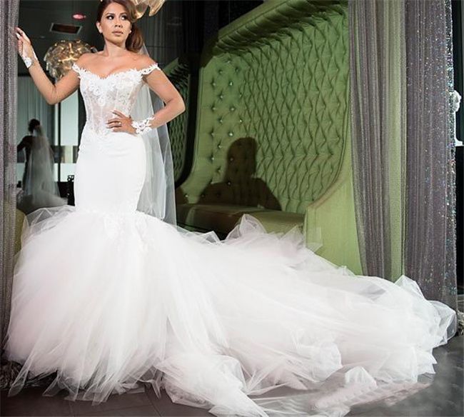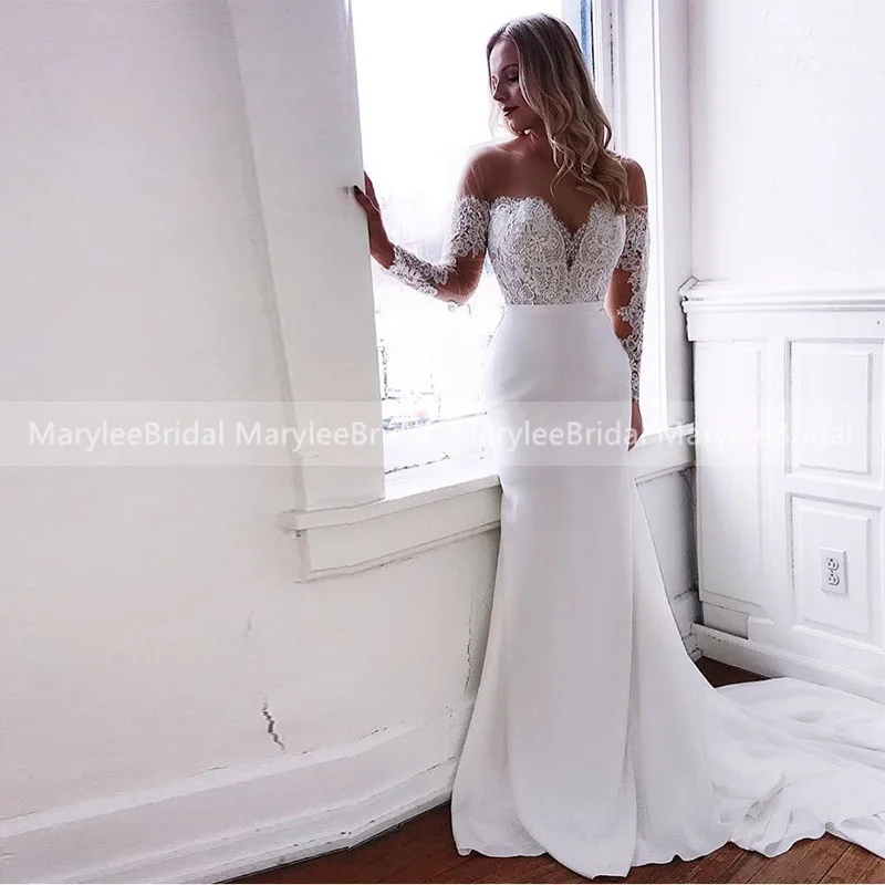 Long Sleeves Mermaid Lace Wedding Dress With Sheer Off Shoulder Mermaid Wedding Dress With Sheer Sleeves