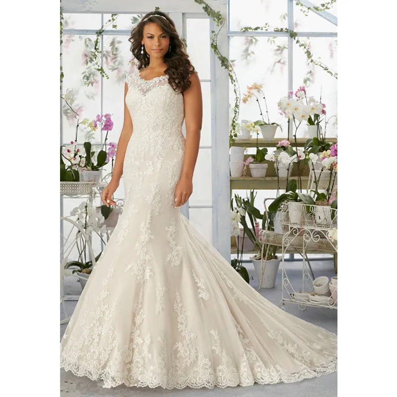 Long Lace Mermaid Wedding Dress Rm3194 Elegant Appliques Scalloped Mermaid Wedding Dresses For Curvy Women