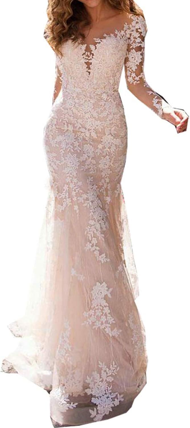Oloey Women S Mermaid Lace Wedding Dresses Long Sleeves Bridal Mermaid Wedding Dresses With Sleeves 2020
