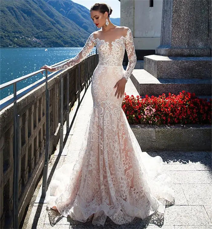 2020 New Luxury Mermaid Wedding Dresses Sheer Neck Illusion Lace Mermaid Wedding Lace Applique Wedding Dresses 2020