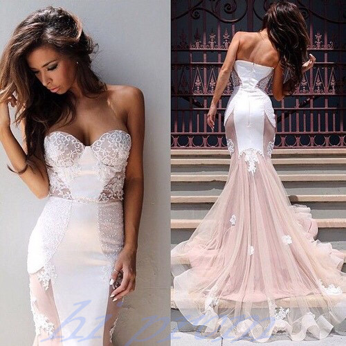 Fashion Mermaid Strapless White Long Wedding Dress On Luulla Mermaid White And Gold Wedding Dress