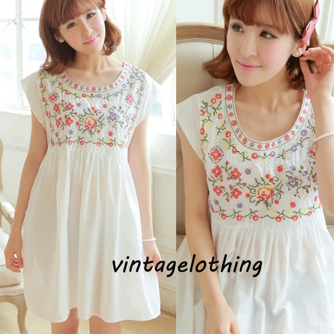 Vintage 70s Angel Flower Embroidery Mexican Party Wedding Mini Dress Cotton Top Solid White Hippie Casual Blouse Women Vestidos Mini Dress Flower Embroiderydress Cotton Aliexpress Mexican Wedding Dress With Embroidered Flowers