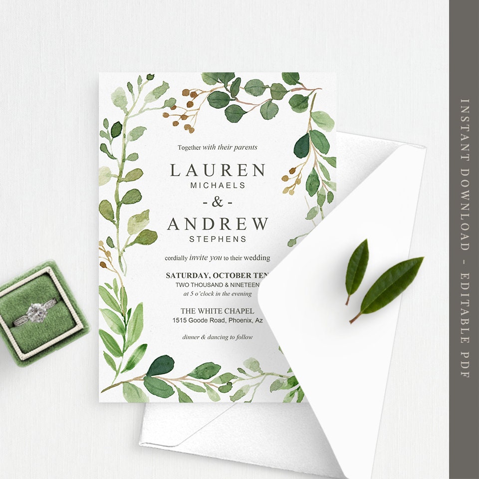 Meredith Michael S Modern Green And White Wedding Invitations Michaels Printable Wedding Invitations