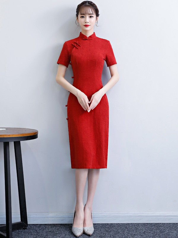Red Mid Length Qipao Cheongsam Wedding Dress Cozyladywear Mid Length Dresses For Weddings