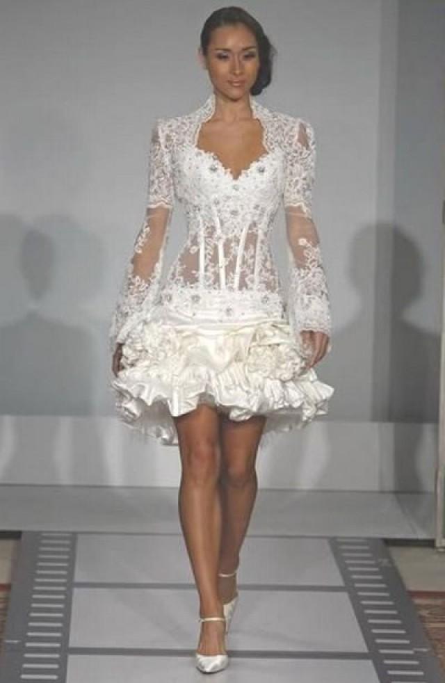 A Line Bateau Appliqued Layered Button Back Organza Mini Wedding Mini Wedding Dress