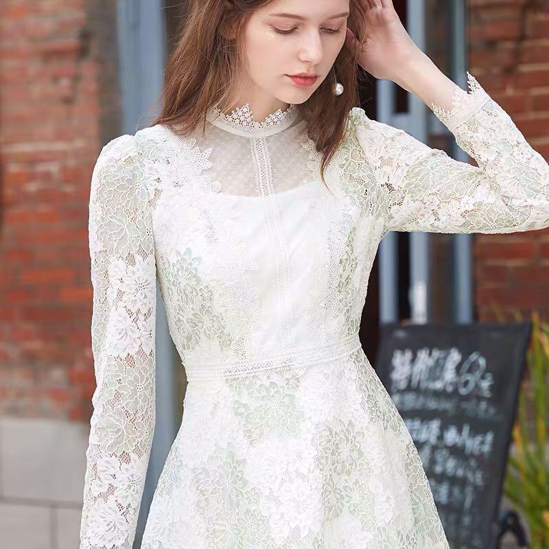 Mint Green White Lace Long Sleeve Wedding Gowns Corset Back Mint Green And White Wedding Dress