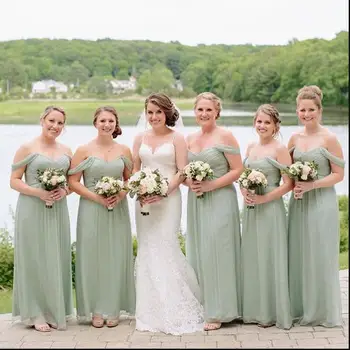 Mint Green Bridesmaid Dress Cheap Chiffon Summer Country Garden Mint Green Wedding Bridesmaid Dresses