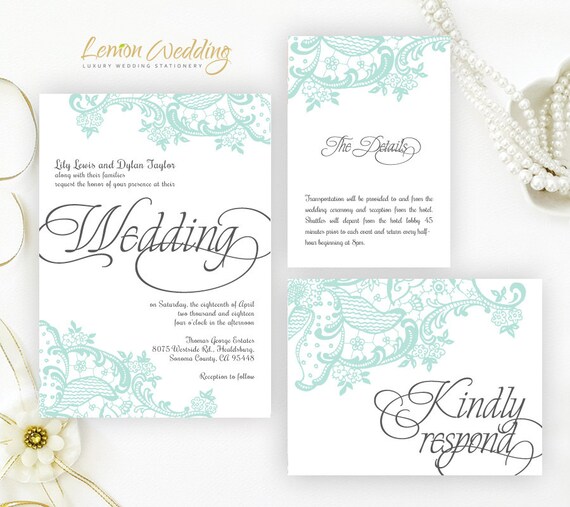 Lace Wedding Invitation Lace Wedding Invitations Lace Wedding Mint Green Wedding Invites