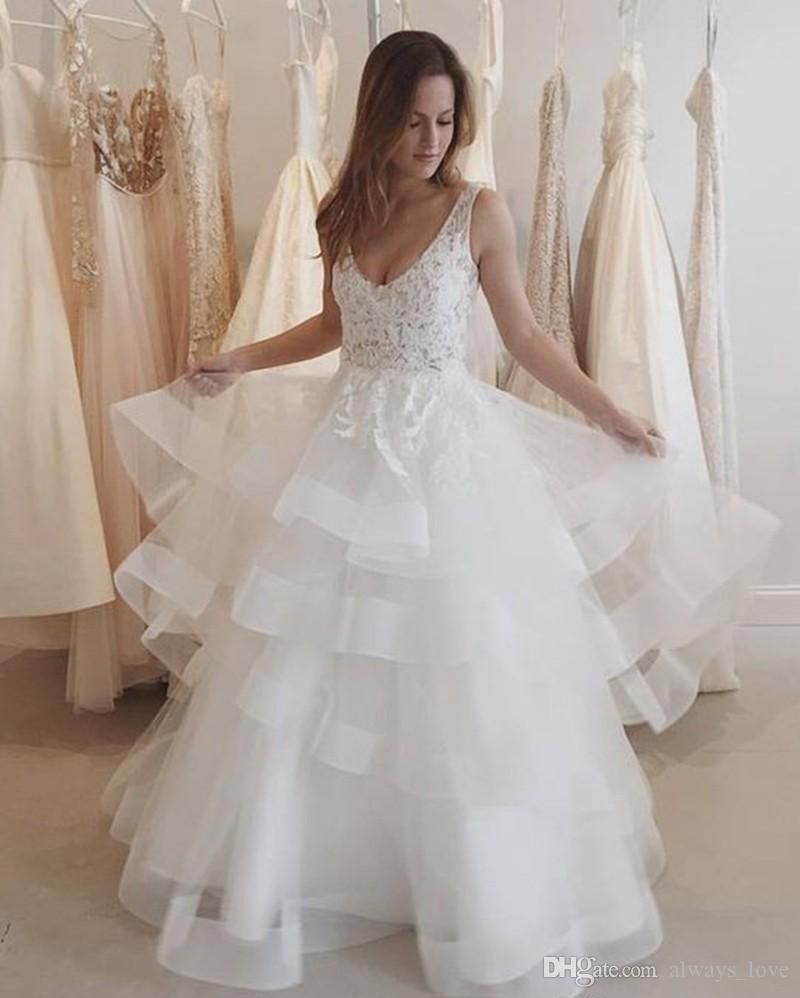 Discount Modern Chic Backless Wedding Dress Sexy Appliques Layered Modern Chic Wedding Dresses