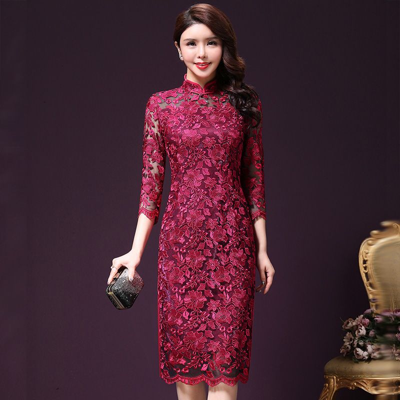 2019 New Qipao Red Lace Cheongsam Modern Chinese Traditional Wedding Dress Women Vestido Oriental Collars Sexy Long Qipao Onuy9 Modern Chinese Traditional Wedding Dress