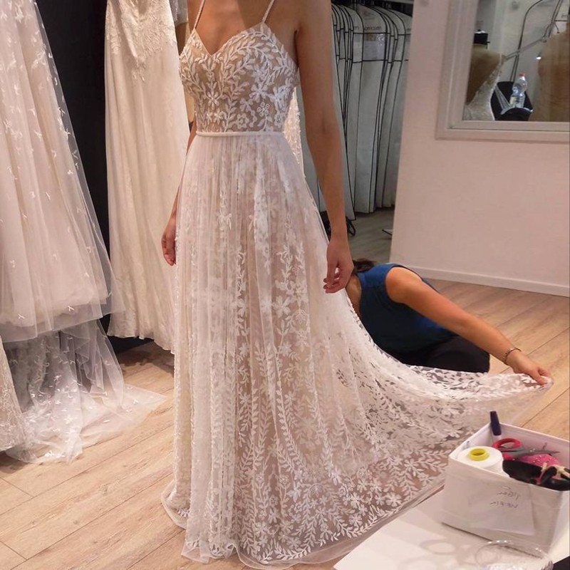 Spaghetti Straps Lace Wedding Dress Sweetheart Sleeveless Boho Modern Simple Lace Wedding Dresses