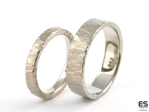 Forged White Gold Wedding Rings Forged Wedding Ring Set Etsy Modern Wedding Rings For Women