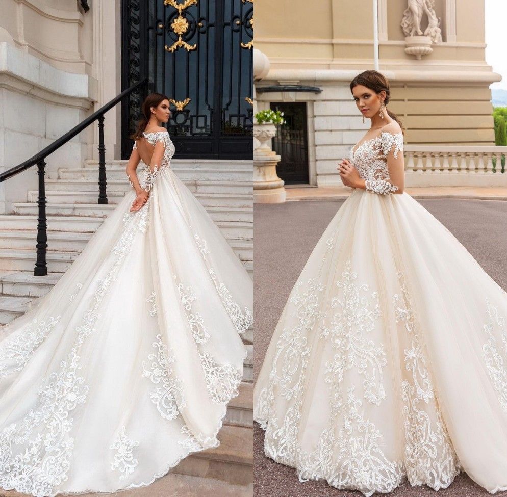 Modest Lace Illusion Long Sleeved Tulle Ball Gown Wedding Dress Modest Long Sleeve Ball Gown Wedding Dress