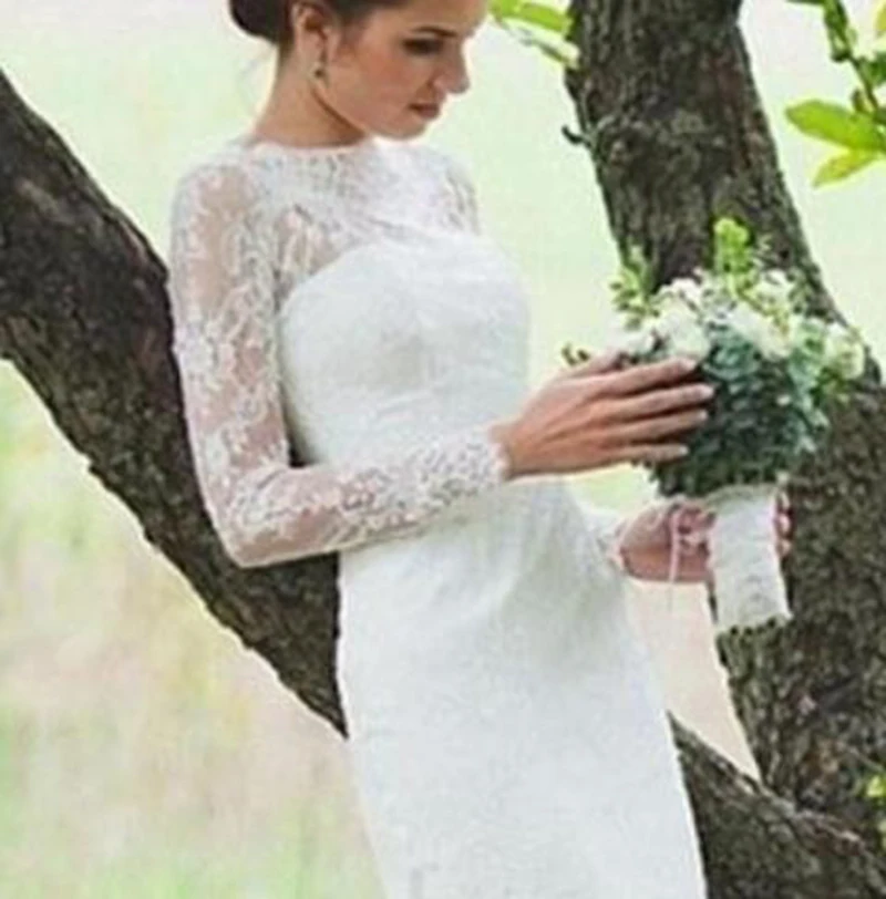 Plus Size Sheath Lace Wedding Dresses Long Sleeve Modest Bridal Modest Sheath Wedding Dresses