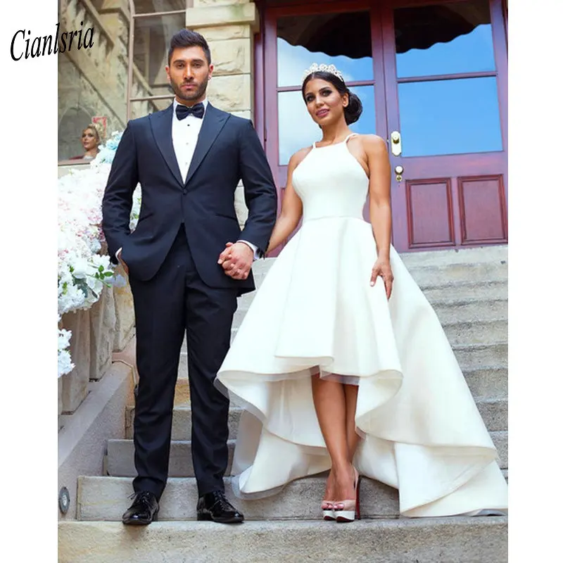 Modest Simple Wedding Dresses High Low Halter Neck Organza Sleeveless 2020 Wedding Party Formal Bridal Gowns Modest Simple Wedding Dresses