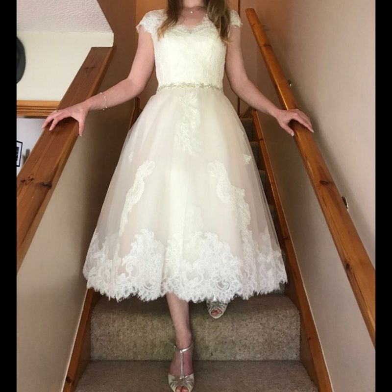 V Neck Tea Length Wedding Dresses With Sleeves Fashion Dresses Modest Tea Length Wedding Dresses