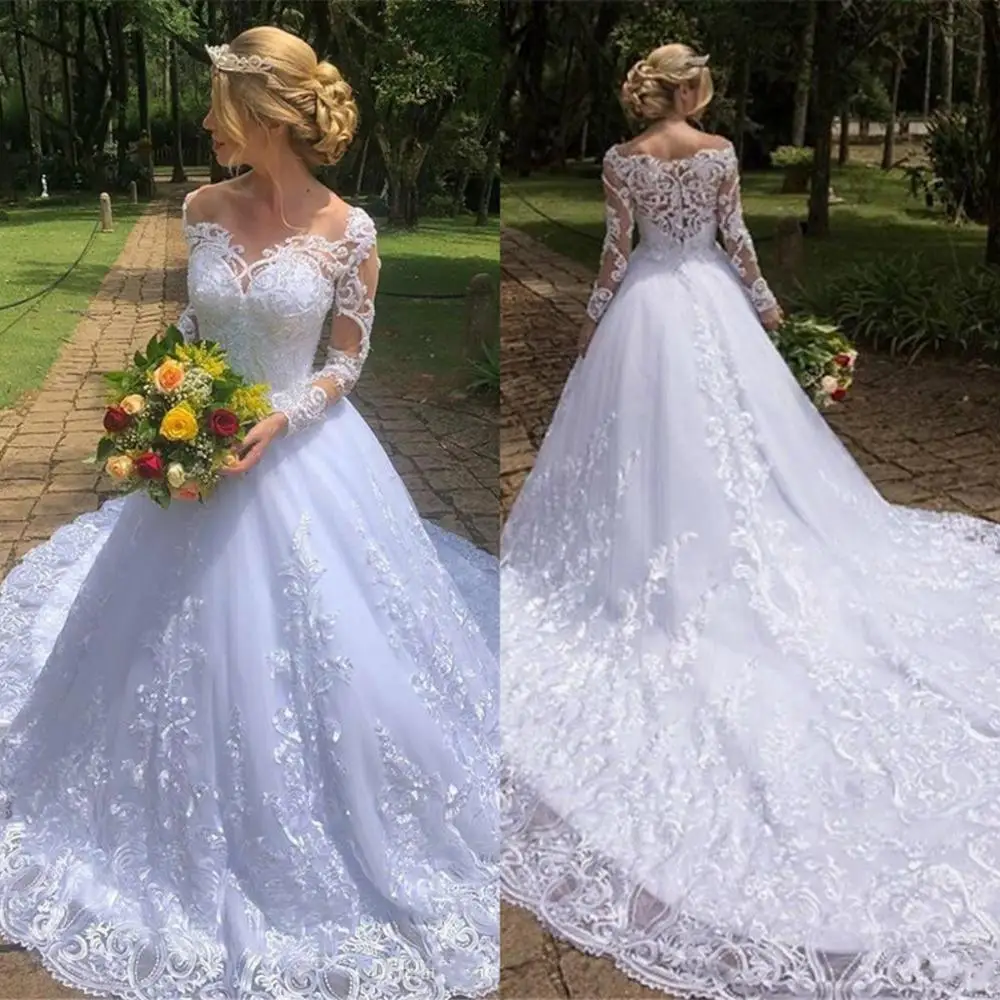 Women S V Neck A Line Lace Applique Long Sleeve Modest Wedding Modest Wedding Dresses Long Sleeve