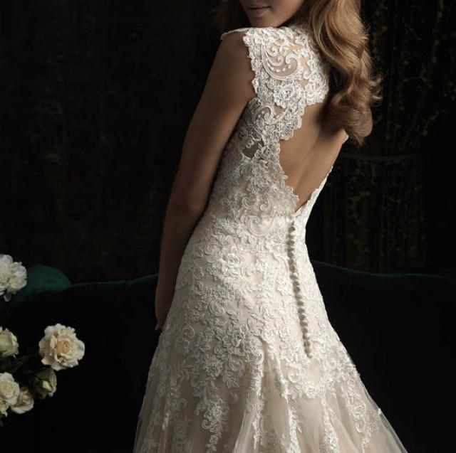 Vintage Chic Open Back Lace Modified Mermaid Lace On Tulle Wedding Modified Mermaid Wedding Dress