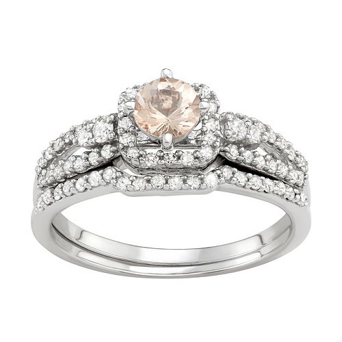 2 25 Carat Morganite Diamond Trio Wedding Bridal Ring Set In 10k Rose Gold With Engagement Ring 2 Wedding Bands Morganite Wedding Ring Sets
