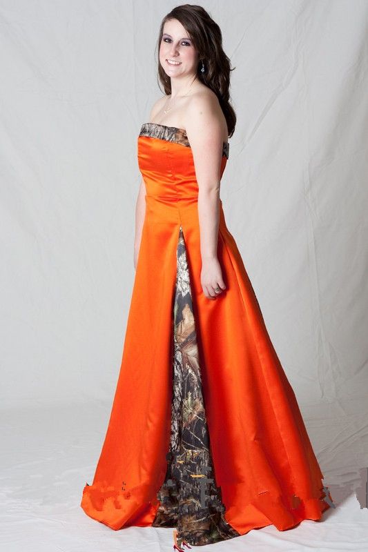 2018 Hunter Oranger Camo Prom Dresses Aline Front Insert Mossy Oak Mossy Oak Wedding Dresses