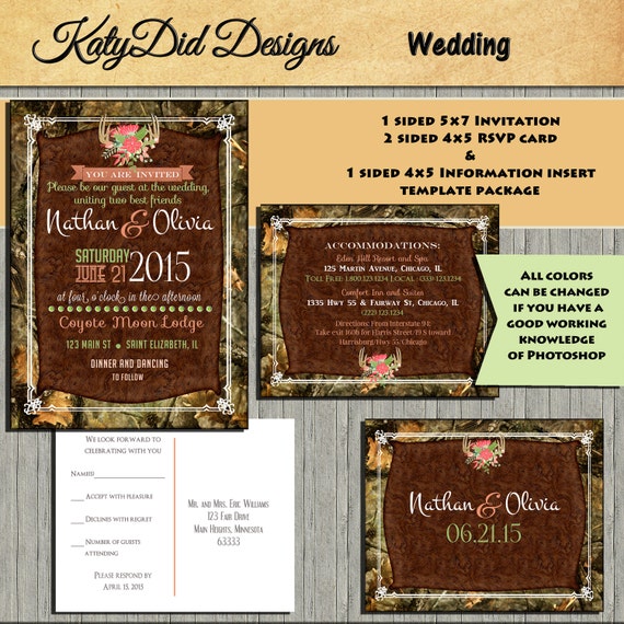 Instant Download Mossy Oak Inspired Deer Camo Camouflage 5x7 Etsy Mossy Oak Wedding Invitations