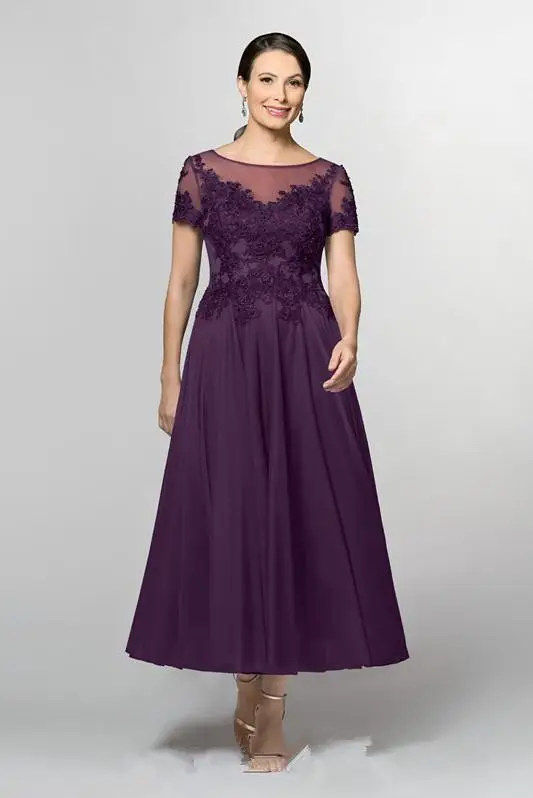 Purple Lace Chiffon A Line Tea Lengt Mother Bride Dresses With Mother Of The Bride Dresses Casual Wedding