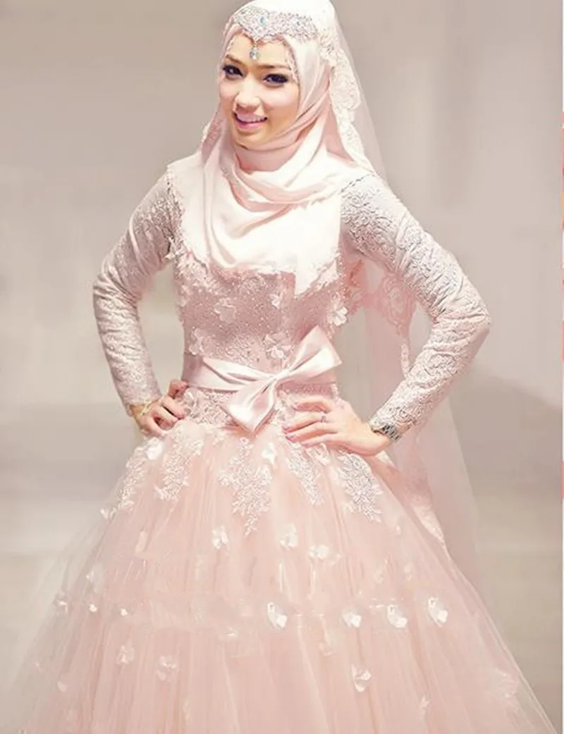 China Pink Lace Bridal Ball Gown Muslim Wedding Dress Tulle Muslim Wedding Dresses Pink