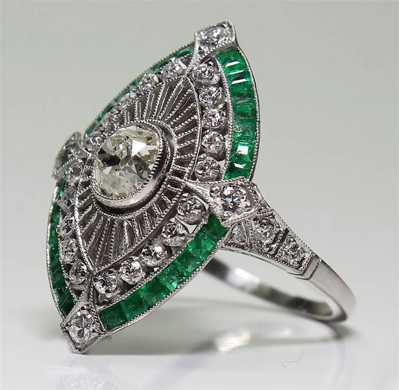 Name Brand Style Shield Aaa Green Zircons Vintage White Gold Name Brand Wedding Rings