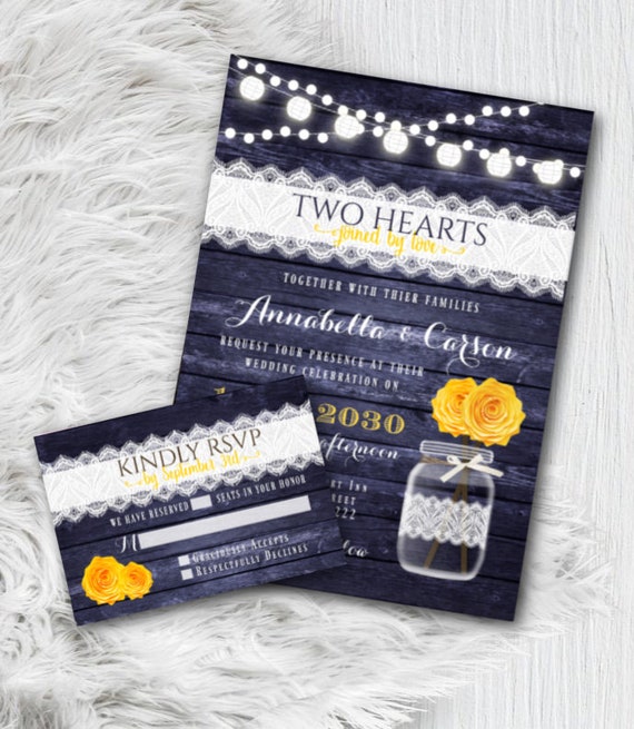Navy And Yellow Wedding Invitation Set With Rsvp Rustic Floral Navy Blue And Yellow Wedding Invitations