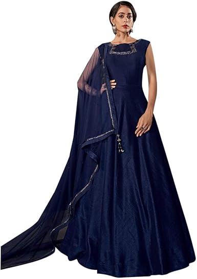 Ethnic Emporium Womens Navy Blue Muslim Silk Anarkali Net Dupatta Navy Blue Dresses For Wedding Pakistan
