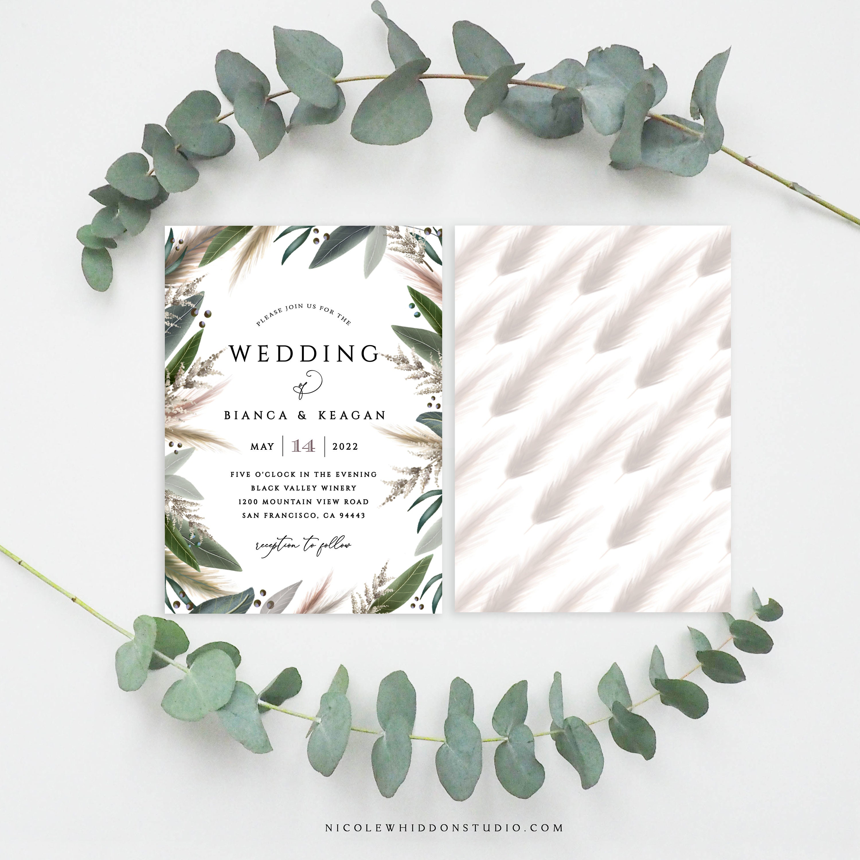 Wedding Invitation Template Rustic Wedding Invitations Pampas Neutral Wedding Invitations