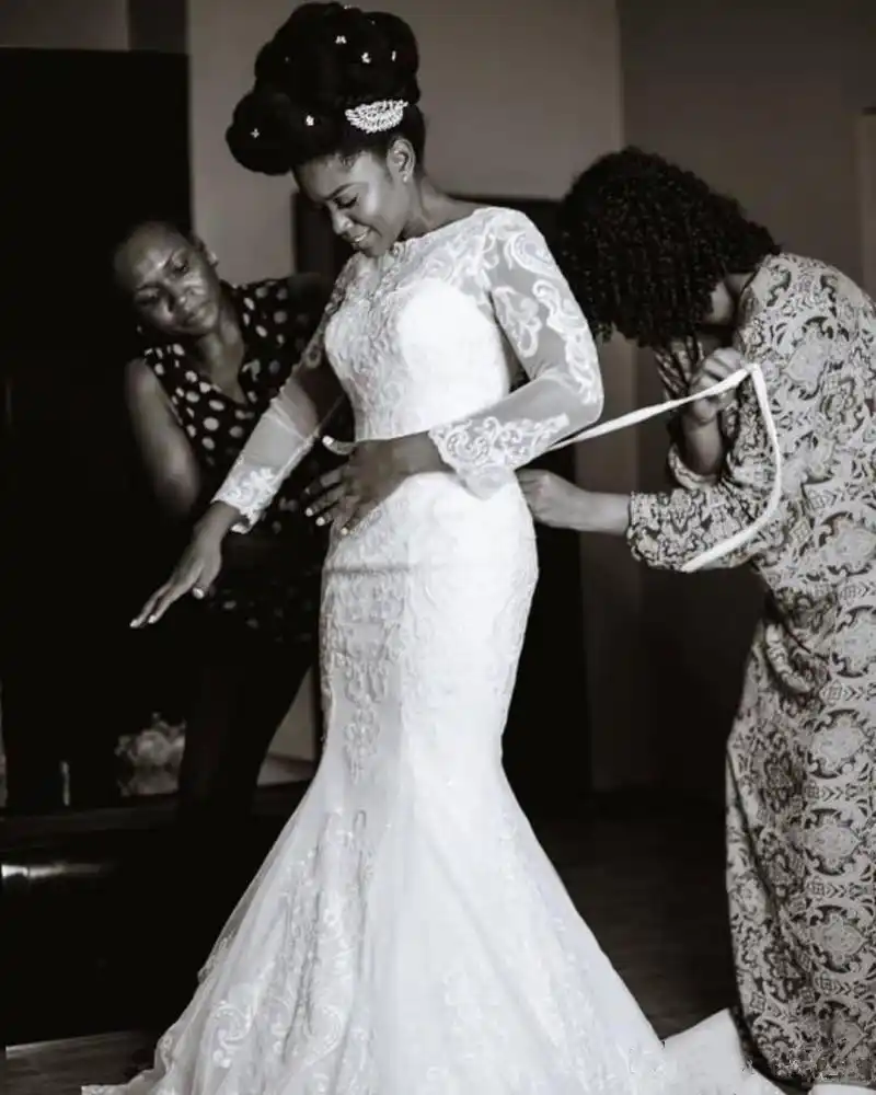 Spring 2020 Country Lace Mermaid Wedding Dress With Sleeves Nigerian Lace Wedding Dress