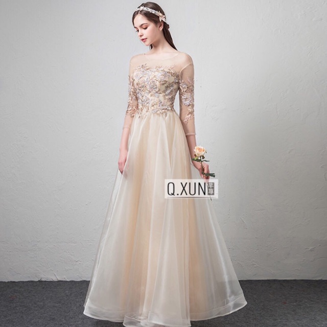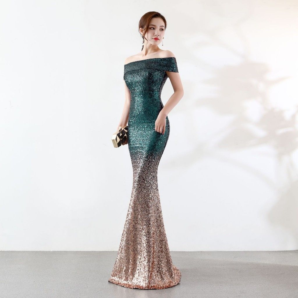 Wedding Engagement Formal Gold Gala Dinner Night Party Long Dress Night Dress For Wedding Party