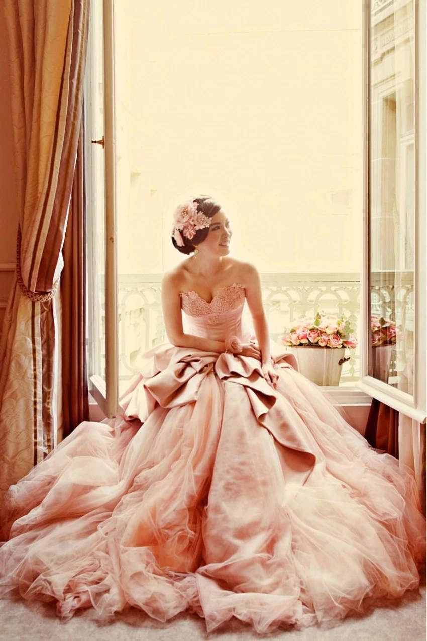 Stunning Nude Pink Ball Gown Wedding Dress Off Shoulder With Lace Nude Pink Wedding Dress