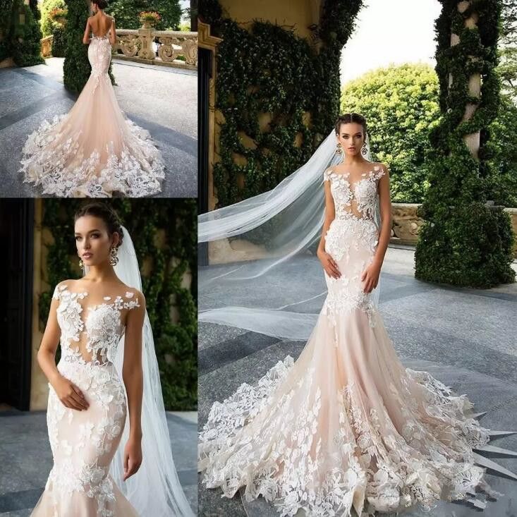 Vintage Long Sleeve Lace Open Back Mermaid Tulle White Wedding Open Back Vintage Lace Wedding Dress