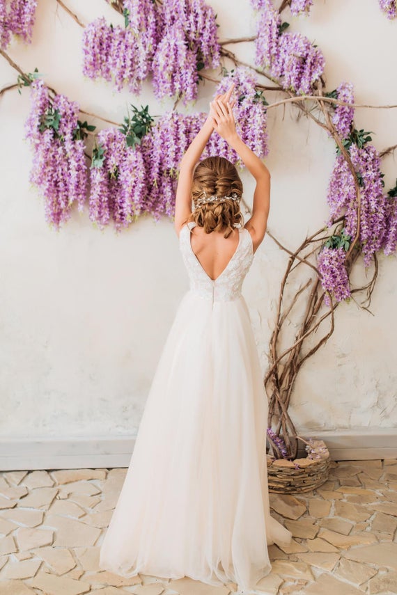 Sale 70 Modest Wedding Dress Open Back Wedding Dress Nude Etsy Open Back Wedding Dresses For Sale
