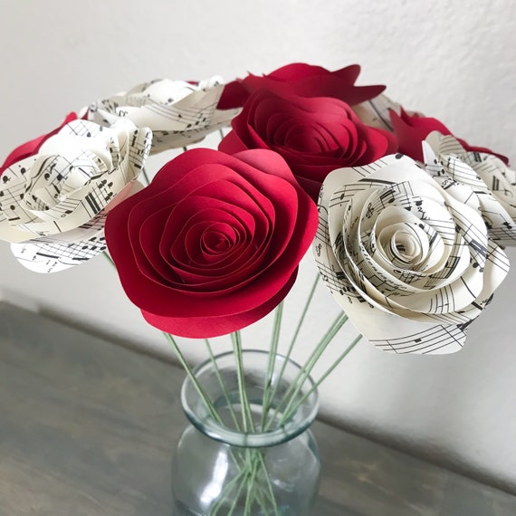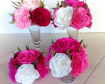 Paper Flowers Stemmed Blush Pink Burgundy Centerpieces Paper Centerpieces Wedding
