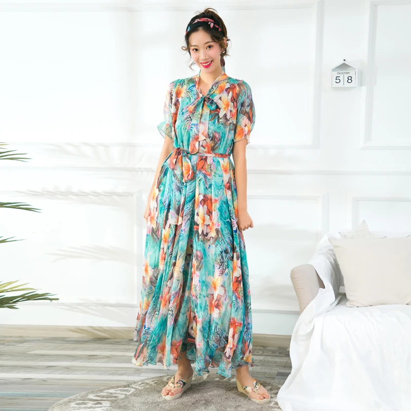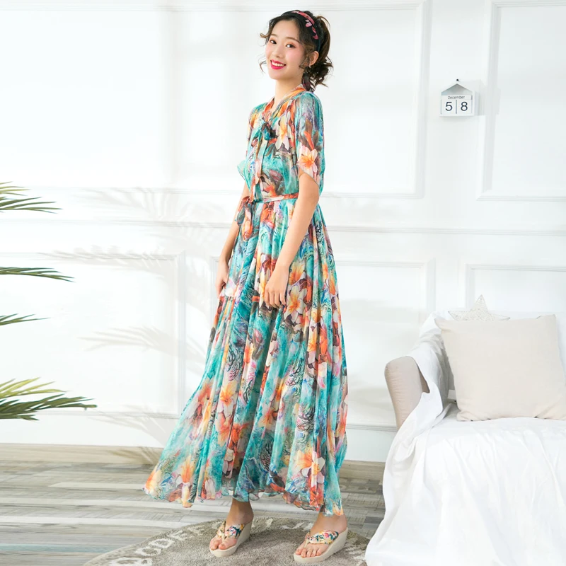 2020 Vintage New Patterns Women Long Chiffon Printed Beach Dresses Party Wedding Guest Party Long Dress Patterns