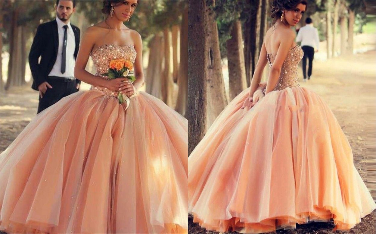 Discount High Quality Peach Colour Wedding Dresses Beautiful A Peach Colour Dresses For Wedding