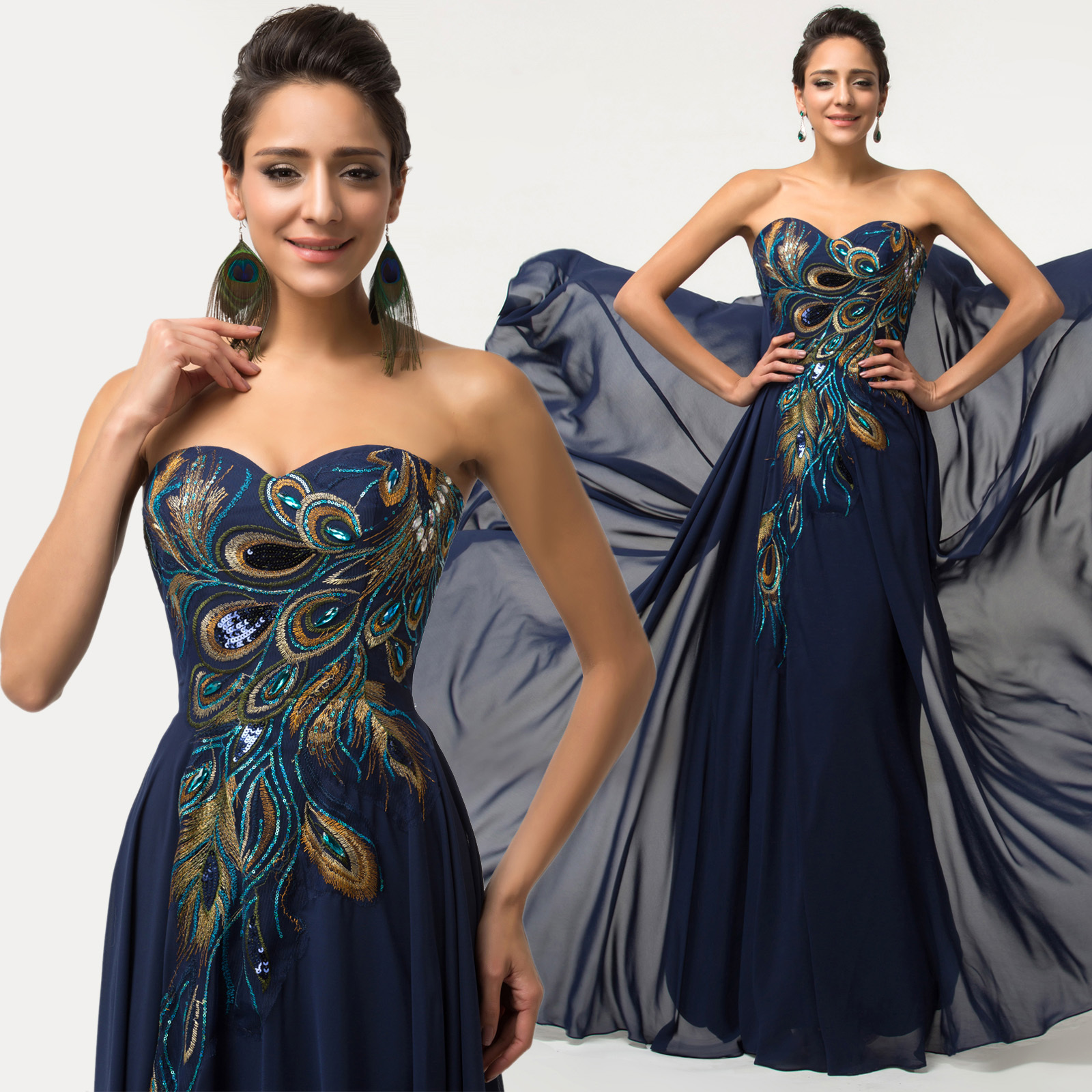 New Peacock Formal Evening Gown Prom Chiffon Bridesmaid Wedding Peacock Wedding Dress Plus Size