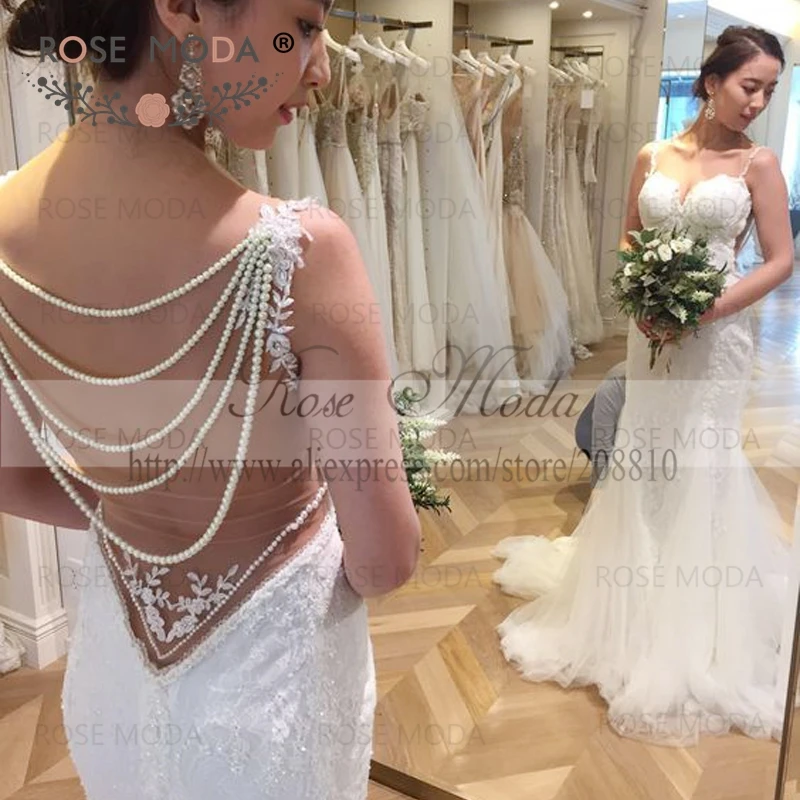 Vintage Inspired Beaded Lace Wedding Dress With Draping Pearls By Pearl Draped Back Wedding Dress