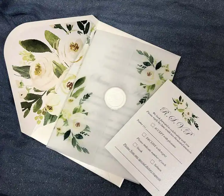 Customized Floral Vellum Wedding Invitation With Wax Seal Ca0957 Personalised Wax Seals For Wedding Invitations