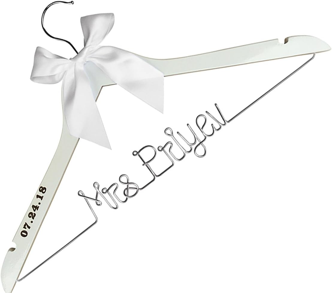 Personalized Bridal Dress Hanger White Hanger Silver Wire Any Name Bride Wedding Personalized Wire Wedding Dress Hanger