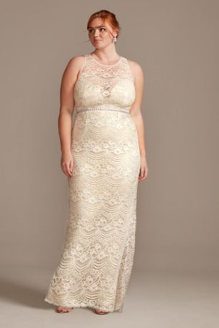 Plunge Illusion Chantilly Plus Size Wedding Dress David S Bridal Petite Plus Size Wedding Dresses